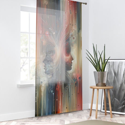 The image titled Empathetic Exchange Essence portrays a vertical Tachism style painting that captivates the viewer with its vibrant flow and intricate details, symbolizing the profound concept of empathy and understanding. The central motif appears to be a butterfly formed by two human profiles facing each other, suggesting a connection and exchange between souls or minds. The profiles are rendered with a smooth transition of colors, blending from cool blues to warm reds, while the core is a harmonious blend of contrasting hues, each side mirroring the other s emotions and thoughts. Around this central imagery are extensive drips, dots, and concentric circular patterns, varying in size and intensity, which seem to represent the ripple effects of empathetic interactions, spreading to the surroundings. The background features vertical streaks of color, transitioning from dark to light and back again, as if depicting the spectrum of human experience and emotions involved in empathetic communication. The work masterfully combines warm and cool tones, as well as areas of high saturation with those of subtle opacity, creating a dance of elements that is both chaotic and ordered—a symbolic representation of the complexities and the beautiful flow inherent in the act of empathizing with another. The visual effect is deeply moving, capturing the viewer s eye and inviting reflection on the essence of empathy, the silent understanding that connects us all.