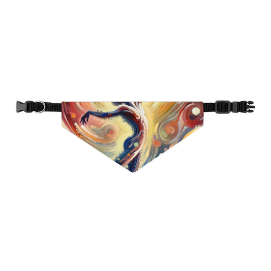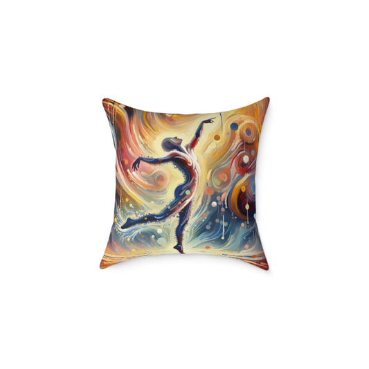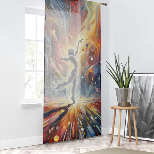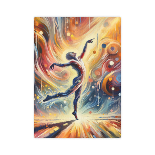 The image titled Wholehearted Divine Dance is a vibrant vertical canvas imbued with the energy and expression characteristic of Tachism, an abstract painting style. It depicts an exuberant dance, a homage to the transcendent joy found in the everyday divine. At the focal point, an abstract human figure is caught mid-twirl, limbs outstretched and head tilted upwards, suggesting a moment of rapture or spiritual ecstasy. The figure is rendered with loose, fluid lines and bold strokes that give it a sense of movement and dynamism, symbolizing a dance that is both unrestrained and deeply connected to the soul. The background is a swirling maelic of rich color and energetic motion. Warm hues of red, orange, and yellow at the base appear to represent earthy foundations, from which the figure cascend a radiance suggesting ascension or enlightenment, with the lower portion depicting what could be interpreted as a divine light source. Circles, dots, and elongated streaks of paint in various sizes are strewn across the canvas, creating a cosmic or celestial texture. Variations in paint viscosity and application techniques result in a feast of visual interest that invites the viewer’s eye to dance across the canvas, mirroring the artwork s theme of movement and spiritual interaction. Overall, the painting is an immersive experience, embodying a celebration of the intimate encounters between humanity and the divine through the metaphor of dance.