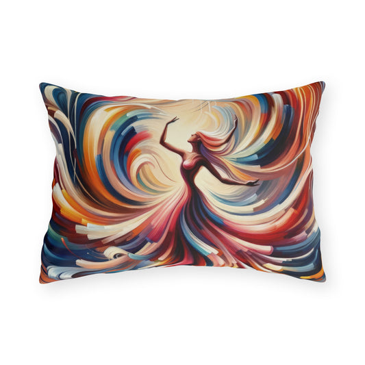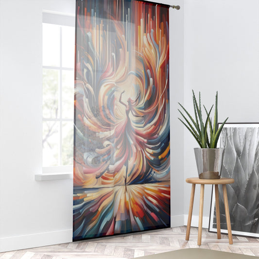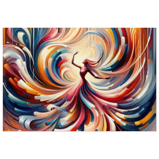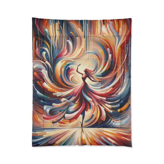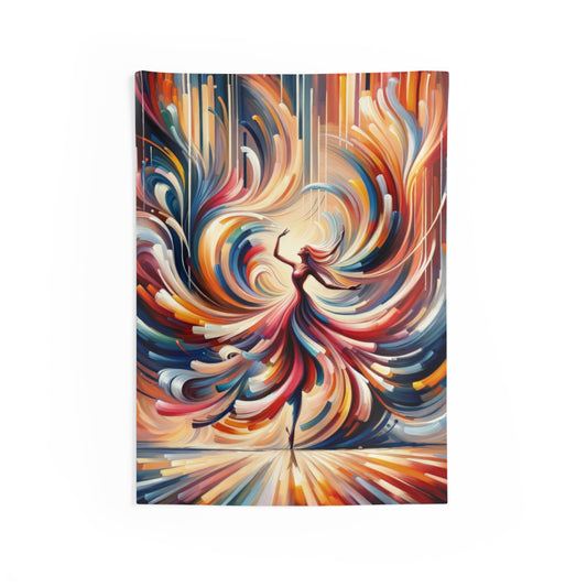 The image titled Life Grandest Ballroom is a vertical Tachism-style painting, bursting with dynamic movement and vivid colors. At the center stands a solitary figure, reminiscent of a dancer, with arms elegantly raised and one leg poised as if in mid-twirl. This figure is fluidly integrated into the painting s evocative swirls and flowing lines, suggesting the essence of dance and the rhythm of life. Surrounding the figure are abstract strokes that cascade across the canvas, creating a sensation of a whirlwind of activity, much like that of a grand ballroom. The myriad of streaks and splashes of color range from warm oranges, deep reds, and bright yellows, to serene blues and calming turquoises, representing the broad spectrum of experiences one might encounter in the grand ballroom of life. The top part of the painting is dominated by cooler tones, transitioning into an explosion of warmth as the colors sweep downward, converging where the dancer figure draws the eye. White vertical streaks suggest both rainfall and rays of light, adding to the depth and complexity of the scene. Overall, this vivid and symbolic representation captures the grandeur and spectacle that could epitomize the rich tapestry of life s experiences, framed within the metaphor of a dance-filled, opulent ballroom.