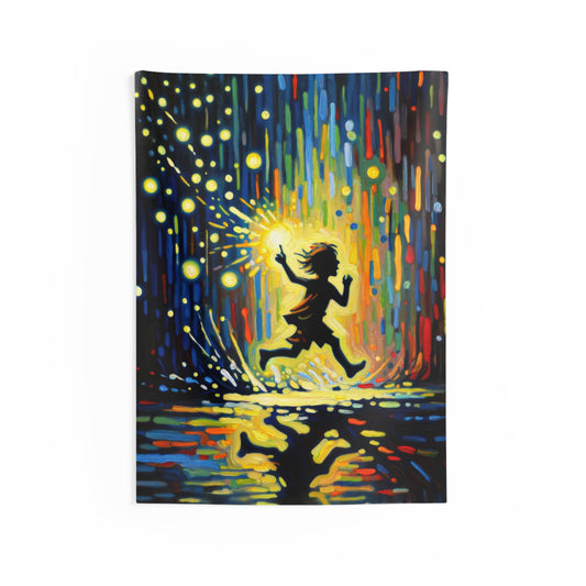 Child Firefly Chase Indoor Wall Tapestries