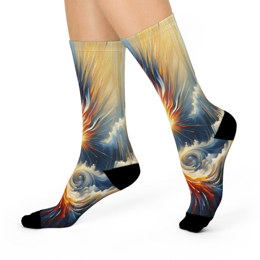 The image titled Ignite Spark Transformation is a vertical Tachism style painting that is mesmerizing and dynamic. It vividly captures the concept of Ignite Transformation with a Single Spark . At the core of this abstract artwork, a radiant spark explodes with unbridled energy, emanating an intense, bright light at the center. This spark appears to be the catalyst for a dramatic transformation that ripples throughout the composition. Flowing from this central burst are fiery streaks of orange, yellow, and red, symbolizing the heat and power of the spark s ignition. These warm colors merge with cooler tones of blues and whites that swirl around, suggesting a harmonious interplay between heat and coolness, chaos and calm. The painting is ablaze with motion, as dynamic strokes and curved forms mimic the movement of flames and waves, perhaps conveying the idea that change is both fluid and consuming. The surrounding environment is marked by vertical streaks of color, possibly alluding to rain, structures, or even the passage of time. These lines create a contrast with the central tumultuous event, reinforcing the theme of transformation—where rigid lines meet the organic, flowing change. The powerful imagery within this painting stirs the imagination, offering a potent visual metaphor for sudden, impactful change that originates from a single, catalytic event.