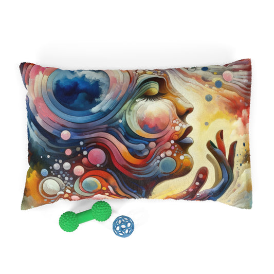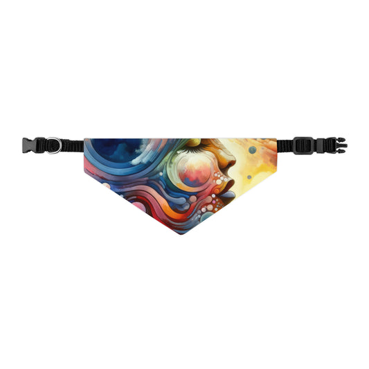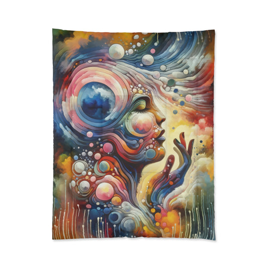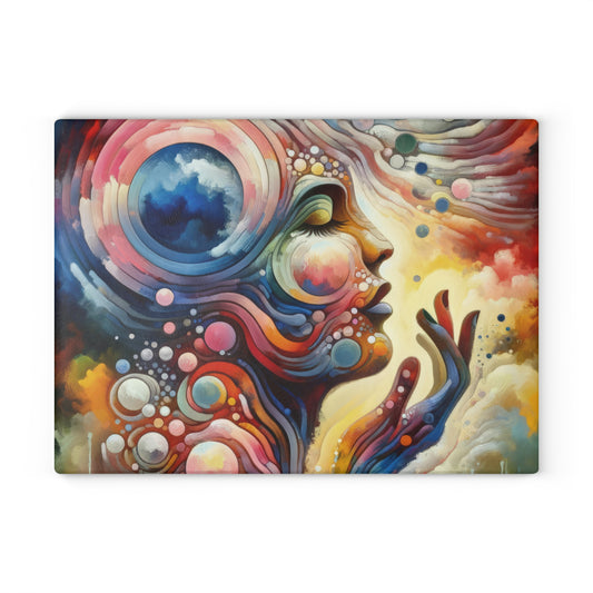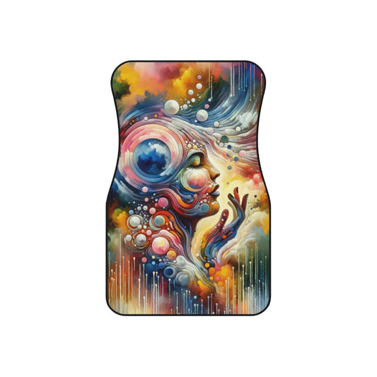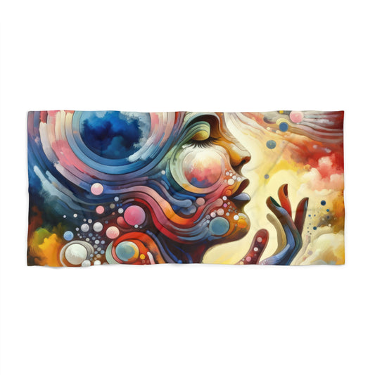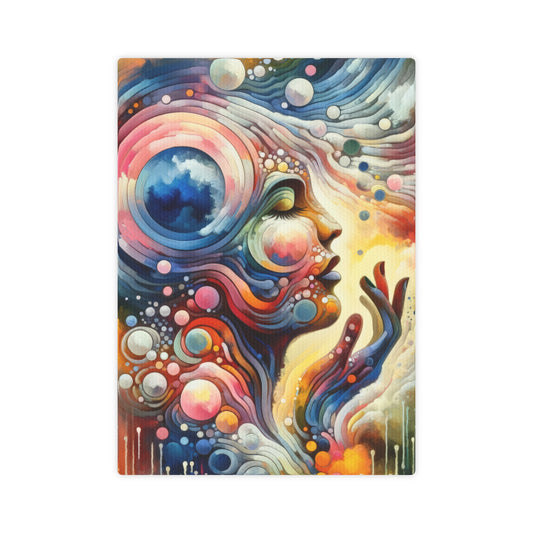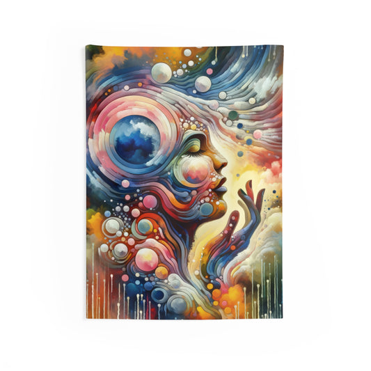 The image titled Mindful Melody Harmony is a vertical work of art rendered in the Tachism style, bursting with vibrant colors and organic forms that intertwine to encapsulate the abstract notion of The Melody of Mindfulness: Harmonizing Your Heart and Habitat. At the core of this piece is a detailed depiction of a side profile of a human figure with eyes closed, symbolizing a state of inner peace and mindfulness. The figure s flowing hair and the surrounding space merge seamlessly, forming a kaleidoscope of swirling patterns and celestial orbs that suggest a cosmic connection. Resembling a blend of outer space and an introspective journey, the artwork is awash in deep blues, fiery oranges, rich yellows, and serene whites, creating a dynamic and harmonious contrast. From the central figure s head emanates a large, circular motif reminiscent of a planet or a moon, enveloping the essence of meditation and tranquility. Surrounding this are concentric circles and dots, pulsating like music notes or vibrations of energy. The background features abstract cloud-like shapes that suggest a dreamy, ethereal landscape, with thick drips of paint cascading down the canvas, possibly representing the release of mental burdens or the flow of time. Overall, this image is a visual symphony, articulating the resonance between one s inner spirit and the surrounding environment through a sensory explosion of color and form.
