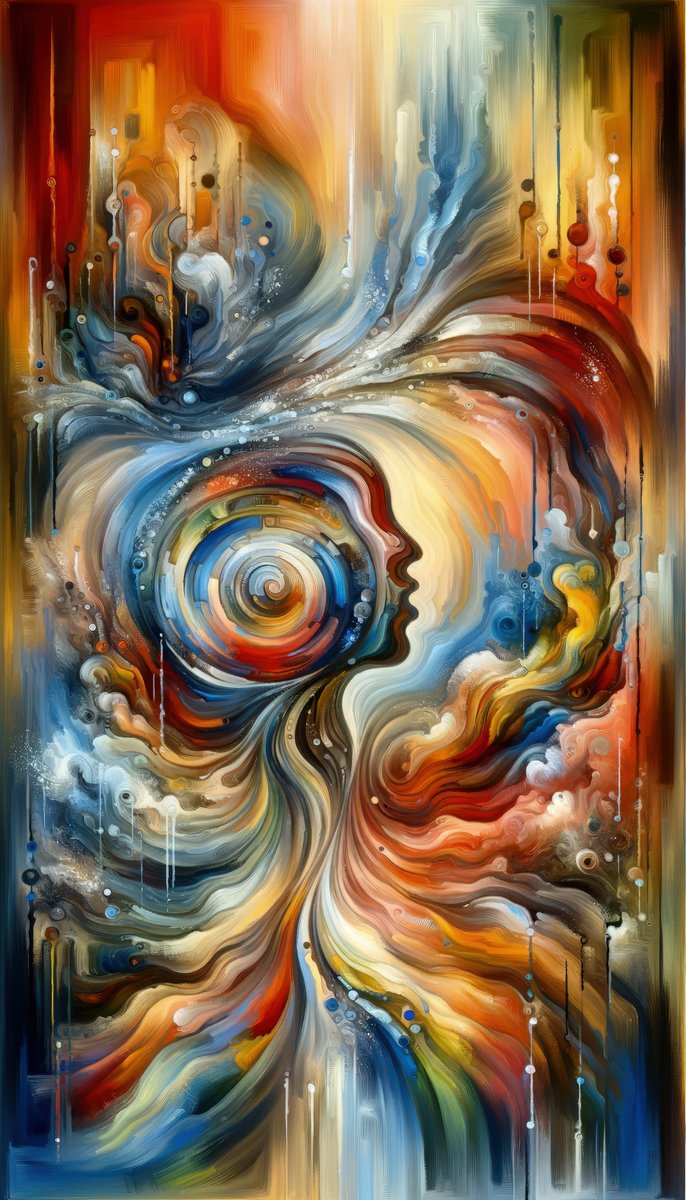 Title: Transformation Essence Vortex This vertical image captivates the viewer with its dynamic blend of colors and fluid shapes, evoking the Tachism style. It symbolizes The Seat of Transformation , representing the essence of profound change. At the center, a prominent vortex swirls with a rich spectrum of colors ranging from warm reds, oranges, and yellows to cool blues and indigo. The spiral pulls in the surrounding elements, signifying the magnetic nature of transformation. Flowing lines and organic forms dance around the vortex, some smooth and undulating, others more abrupt and fragmented. This juxtaposition illustrates the unpredictable journey of transformation. Drips of paint cascade down the canvas, suggesting both the passage of time and the bleeding of one form into another. The painting is alive with movement, almost as if the shapes are in the middle of metamorphosis. Warm and cool hues are masterfully contrasted, creating a visual temperature gradient across the piece. Patterns of concentric circles interspersed throughout the artwork imply continuous cycles of change. Light seems to emanate from within the vortex, casting a glow that permeates the surrounding area and highlights the textures of the piece. The image, titled Transformation Essence Vortex, encapsulates the dynamic and all-encompassing nature of transformation, with each brushstroke contributing to the sense of profound evolution and rebirth.