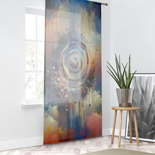 Titled Conscious Rings Tachism, the artwork is a vertical image that captivatingly embodies the essence of Global Consciousness: The Outmost Rings. The tachisme style is palpable, with spontaneous dribbles, splatters, and energetic strokes compiling a composition both abstract and richly symbolic. At the center, a textured, vibrant vortex draws the eye, with concentric rings expanding outward like ripples from a pebble in a pond. These rings vary in opacity and clarity, suggesting layers of consciousness or dimensions of thought extending into the universe. The central core incorporates a palette of fiery reds and oranges, contrasting with the serene blues and soothing turquoises that dominate the surrounding rings. Interspersed across the canvas are spherical forms resembling celestial bodies. They float weightlessly, varying in size, color, and texture—enigmatic orbs that add depth and galactic allure to the piece. Some of these spheres are detailed with what seem to be miniature landscapes or abstract patterns, while others are minimalist, evoking the simplicity of distant planets or atoms. The background is a symphony of colors, blending warm peach and cool sky blue gradations, conveying the transition from day to night or the merging of different worlds. The painting feels dynamic and still all at once, encapsulating the ever-expanding notion of global consciousness within its layers and bursts of colors. It is a visual journey that invites introspection and a sense of connection with the vastness of the collective human