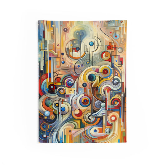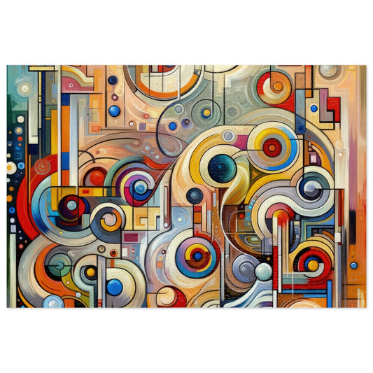 The image titled Playful Wisdom Essence is a vibrant Tachism style painting that bursts with energy and color. This vertical artwork is a visual symphony of abstract forms and swirling patterns that come together to symbolize an approach to life that is both playful and wise, with a keen embrace of experiences. At a casual glance, the canvas seems to be alive with circular motifs and organic shapes that flow like currents across the painting, drawing the eye in a dance around the piece. Warm and cool hues mingle in a carefully balanced palette, creating depth and contrast as they shift from soothing blues and calming greens to energetic reds, oranges, and yellows. The composition is a mix of precision and spontaneity, with clearly defined lines and geometric structures intersecting with the freer, more fluid elements. Circles of varying sizes, some concentric, seem to suggest the idea of cycles and the dynamic nature of life, while squares and rectangles ground the piece with a sense of stability. Linear elements, what appear like precise drips and elongated shapes, establish a rhythm and a sense of direction, leading the viewer s gaze throughout the canvas. Some sections of the painting exhibit a pixel-like granularity, adding a texture that contrasts with the smoother, broader areas of color. This painting captures the essence of playful wisdom with an inviting chaos that is tempered by a thoughtful composition, inviting viewers to reflect on the joyful complexities of life.
