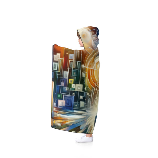 Titled Mindful Megabyte Convergence, this vertical Tachism style painting is an abstract portrayal of a day where mindfulness and megabytes coexist. Dynamic streaks of vibrant colors—blues, oranges, and yellows—create a sensation of motion towards the painting s center. Swirling patterns reminiscent of both natural and digital realms converge in the middle, suggesting a harmonious intersection of thought and technology. In the foreground, a solitary silhouette of a person appears to stand at the threshold of this convergence, adding an element of humanity to the composition. The figure seems to be contemplating the sublime nexus of living consciousness with the order and structure of the digital environment. The painting is rife with contrasting elements. Organic shapes and celestial spirals clash and blend with the geometric precision of squares and rectangles, symbolic of the digital world s binary structure. Bursts of light and shadow create depth and engage the viewer in a visual dialogue about the balance between human introspection and the omnipresent digital footprint that colors our contemporary existence. It is an ode to the modern age: a sensory and intellectual feast that encapsulates the essence of two worlds colliding and coalescing, painted with a sense of optimism for a future that embraces both the peace of inward reflection and the advancements of technological innovation.