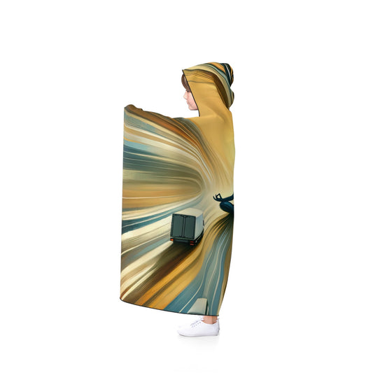 The image titled Meditative Commute Flow is a vertical painting created in the Tachism style, evoking a sense of motion and abstraction. The artwork symbolically captures the concept of viewing the daily commute as a moving meditation and transforming one s inbox into a trigger for gratitude. At the center of the composition is a serene figure in the lotus position, seemingly floating and meditating amidst the chaos of daily travel. Radiating from this central figure are dynamic, flowing streaks of color that create a sense of rapid movement, reminiscent of a bustling cityscape or the rush of traffic seen from a high-speed perspective. The colors vary from warm golden hues to cool blues, indicating a transition from calm to energy, possibly symbolizing the balance one finds in meditation despite external circumstances. Above the meditative figure, floating symbols of communication such as envelope icons and the @ sign suggest the reception and sending of emails, offering a visual metaphor for finding gratitude in the constant flow of digital communication. Flanking the figure are vehicles—a truck on the left and a car on the right—enveloped in the same sweeping motion lines that dominate the composition. This inclusion of modern modes of transport reinforces the theme of commute and lends a contemporary feel to the artwork. Overall, the piece is an artistic exploration of finding inner peace and appreciation within the frenetic pace of modern life.
