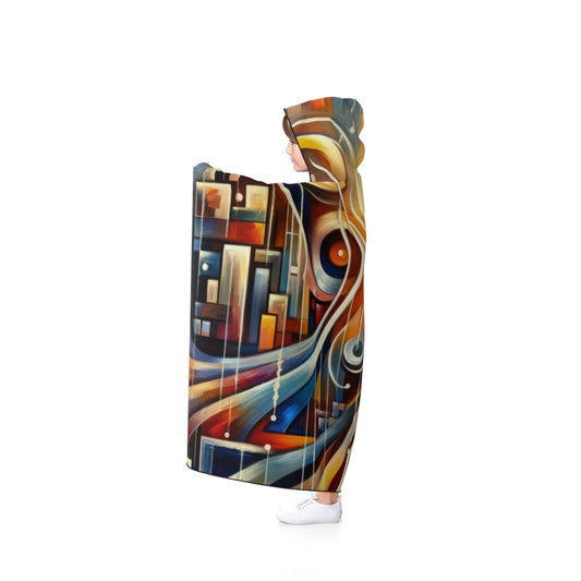 The image titled Symphonic Perspective Embarkation presents an evocative and striking vertical Tachism style painting. The artwork is a confluence of sweeping gestures and bold colors, featuring a dynamic spectrum that ranges from deep blues and purples on the left, to vibrant oranges and yellows on the right, intersected by a central explosion of brilliant light emanating from a radiant focal point. Towards the center of the painting, an organic form reminiscent of a stylized human figure with outstretched arms rises, as though conducting or embracing the surrounding chaos of colors and shapes. This central figure appears to channel the surrounding energy, with a prominent spiraling pattern that loops around its silhouette, further enhancing the impression of movement and musicality. Geometric shapes, possibly symbolic notes or beats in this symphony, dot the canvas, adding a sense of rhythm and structure amidst the fluidity. Some of these shapes are elongated, resembling pillars of varying heights that stretch vertically, contrasting with other shapes that are more square or rectangular. From the central light source and figure, wave-like strokes radiate outward, suggesting a dynamic unfolding and blending of perspectives. The cascading forms and lines imbue the piece with a sense of depth and dimensionality, evoking the multi-layered complexity of a musical composition. Silvery white lines, akin to strings of melody, drip down the canvas, heightening the symphonic metaphor of the piece. These lines interplay with the bold architecture
