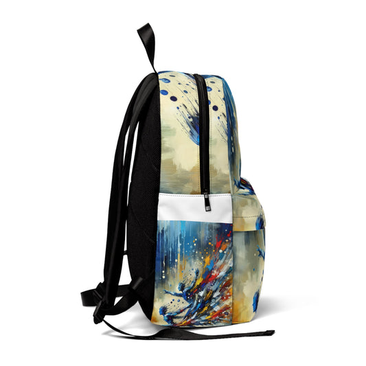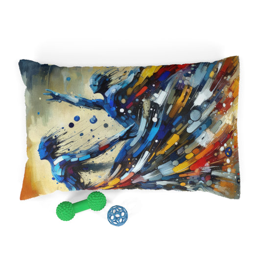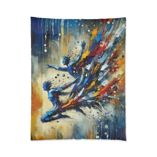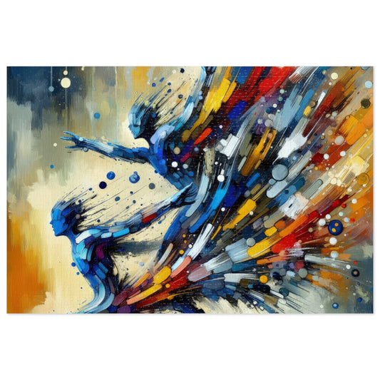 The image titled Empowering Mastery Cascade is a vibrant vertical artwork rendered in the Tachism style, which is part of the broader Expressionist movement that focuses on the spontaneous application of paint. The use of bold, dynamic strokes and splatters across the canvas encapsulates the theme of Empowering Individual Mastery, through a symbolic and abstract representation. The composition is dominated by an explosion of colors — deep blues, vivid yellows, and fiery reds, all intermingling with stark whites and muted earth tones. Central to the image, one can discern the form of a human figure, which appears to be in a state of evolution or transformation. The figure is stretched out and towards the right side of the canvas, giving the impression of movement and progression. Energetic lines and dots radiate outward from the figure, suggesting a release or transfer of energy. This dynamic movement of colors and forms beyond the figure portrays the idea of influence or impact extending into the surroundings — possibly a metaphor for the dissemination of skills, knowledge, or empowerment from the individual to the broader community. The downward drips of paint create a sense of gravity, while the upward surge of the figure and the outward burst of colors communicate a compelling contrast, symbolizing perhaps the struggle and triumph of personal development and mastery. This image captures an abstract portrayal of self-empowerment and the cascading effect it can have, embodying resilience, growth, and the outward ripple of one s inner strength and capabilities.
