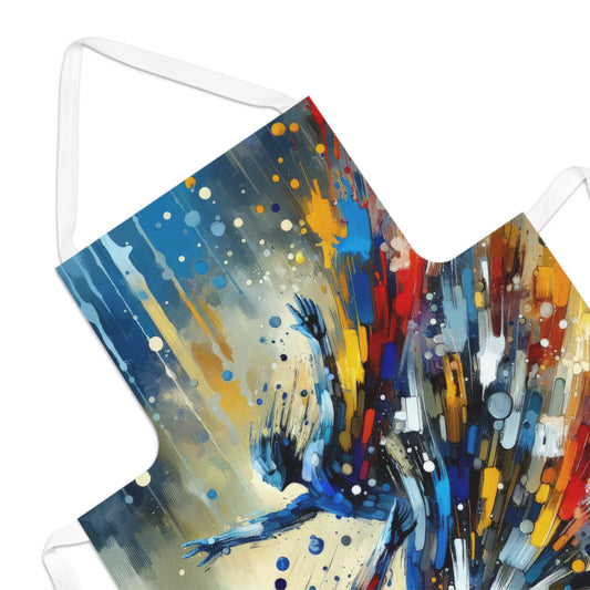 The image titled Empowering Mastery Cascade is a vibrant vertical artwork rendered in the Tachism style, which is part of the broader Expressionist movement that focuses on the spontaneous application of paint. The use of bold, dynamic strokes and splatters across the canvas encapsulates the theme of Empowering Individual Mastery, through a symbolic and abstract representation. The composition is dominated by an explosion of colors — deep blues, vivid yellows, and fiery reds, all intermingling with stark whites and muted earth tones. Central to the image, one can discern the form of a human figure, which appears to be in a state of evolution or transformation. The figure is stretched out and towards the right side of the canvas, giving the impression of movement and progression. Energetic lines and dots radiate outward from the figure, suggesting a release or transfer of energy. This dynamic movement of colors and forms beyond the figure portrays the idea of influence or impact extending into the surroundings — possibly a metaphor for the dissemination of skills, knowledge, or empowerment from the individual to the broader community. The downward drips of paint create a sense of gravity, while the upward surge of the figure and the outward burst of colors communicate a compelling contrast, symbolizing perhaps the struggle and triumph of personal development and mastery. This image captures an abstract portrayal of self-empowerment and the cascading effect it can have, embodying resilience, growth, and the outward ripple of one s inner strength and capabilities.