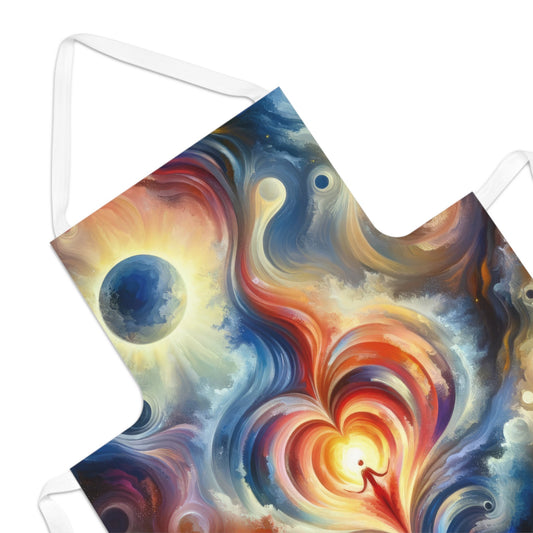 Titled Unified Heart Journey, the image before you is a vibrant vertical Tachism style painting that symbolically captures the essence of Awakening the Unified Heart: The Journey to Personal and Planetary Alignment . Dominated by swirling motifs and dynamic strokes, the painting exudes energy and motion, inviting the viewer into a celestial dance of color and light. The color palette is rich and diverse, spanning from the fiery reds and warm oranges at the bottom to the cool blues and purples towards the top, intermingled with highlights of white and yellow that suggest an inner radiance. Central to the composition is a striking heart shape that seems to pulsate with life, its outlines defined by luminous shades of red and orange. At the heart s crest, a small figure stands with arms raised, evoking a sense of connection and unity with the cosmos. Each brushstroke appears to ebb and flow, resembling both the spiraling galaxies of the universe and the intimate inner workings of the human spirit. Each whirlpool and celestial body within the painting seems to orbit around the heart, emphasizing the notion of universal alignment with one s innermost being. The painting engages the viewer on a journey through the depths of the soul to the expanses of the cosmos, harmonizing the microcosm and macrocosm in a single moment of awe and enlightenment, making it a powerful visual metaphor for spiritual awakening and harmony.