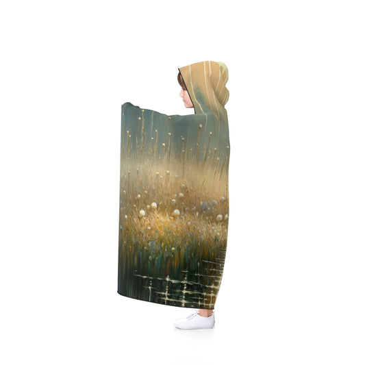 The image titled Observant Delicacy Heart captures a serene and enigmatic scene rendered in a Tachism art style. At the center, a luminescent, full moon hangs in a gradient sky shading from a warm, honeyed hue at the horizon to a cool azure at the top. This celestial body bleeds white drips into the sky, a stark contrast against the darker subdued backdrop, evoking a sense that the moon is melting or perhaps reflecting the piercing light of a sun unseen. Beneath the moon, a field of ethereal botanicals stretches into the distance. Wispy, delicate spheres reminiscent of dandelions after bloom or perhaps some undiscovered flora, populate the scape. Their stalks are slender and topped with globes of white that shimmer with the moon s glow, casting a mystical haze across the landscape. This meadow bristles with a quiet vitality, each strand standing as a silent sentinel in the tranquil tableau. Reflecting the sky and the surreal flora, there is a mirror-like body of water with ripples that gently distort the reflection of light, creating an impression of a pathway leading to the distant horizon. The water enhances the scene’s dreamy, contemplative atmosphere, inviting the observer to remain quiet and absorbed in this moment of tranquil beauty. This image seems to resonate with the themes of observation—taking in the subtle details, delicacy—appreciating the softness and fragility of the scene, and an open heart—
