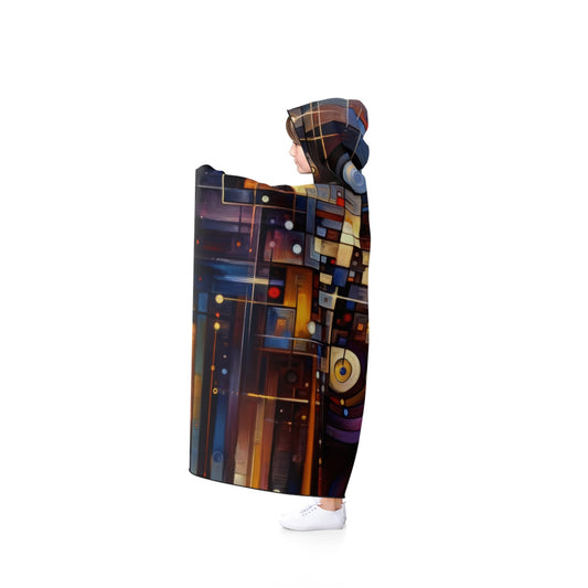 Reflective Tachism Shield is a captivating vertical Tachism style painting that engulfs the viewer in its intense abstraction and vibrant colors. The work is a mosaic of emotions, symbolizing the complex relationship between technology and self-awareness. It strikes a balance between warmth and coolness, with hues ranging from rich blues and purples to fiery reds, oranges, and yellows. At the core of the painting, a human visage is cleverly integrated, appearing to split or mirror itself along the central vertical axis. One half of the face showcases a digital, pixelated motif, composed of numerous squares and rectangles, reminiscent of circuit boards or electronic grids, while the other half is more fluid, with organic lines and circular patterns evoking a more emotional and natural state. Striking contrast is not only thematic but also visual, as the geometric precision on one side opposes the free-flowing curves on the other. This suggests an internal struggle or commentary on the duality of modern existence—the logical, digital self versus the intuitive, organic self. The artwork s title and style imply a commentary on technology as a barrier, possibly reflecting on how screens can act as shields that both protect and isolate us. The use of Tachism, known for its spontaneous and intuitive brushwork, adds a raw and expressive dimension to this philosophical inquiry, indicating a deeper search for identity and authenticity amidst a digitized world. The image is rich in details and symbolism, prompting viewers to ponder