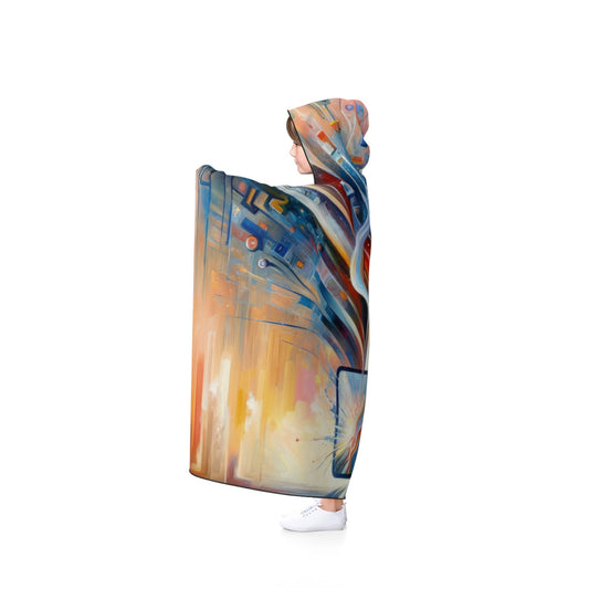 The image titled Empowerment Through Technology is a vivid and dynamic Tachism style painting. At the center of the composition is a stylized representation of technology – an electronic device or a symbolic portal with a screen that bursts forth with an explosion of colors and shapes. From this nucleus, a vibrant array of lines, geometric patterns, and abstract elements radiates outward, suggesting the dissemination of information, energy, and innovation. The color palette is rich and diverse, with fiery oranges and reds blending into cooler blues and indigos at the periphery, possibly denoting the warmth of human touch interfacing with the cold precision of technology. Drips and splatters of paint cascade downwards, hinting at a sense of action and the organic flow of creativity. The overall vertical orientation of the painting adds to the impression of growth and upward movement. This artwork encapsulates the concept of technology as a means of liberation and advancement rather than confinement. It portrays the potential for digital tools to open up possibilities and extend the reach of human capability. The use of abstract expression allows the viewer to interpret the myriad ways in which technology can intersect with human life, fueling progress and empowering individuals.