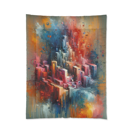 The artwork titled Digital Harmony Tachism is a vertical image that strikingly embodies the art of digital harmony. Through a Tachism style approach, the art captures a harmonious blend of organic and computational aesthetics. It depicts an abstract cityscape with geometric structures that are reminiscent of buildings. These forms radiate upwards and downwards, seemingly echoing into infinity. A vibrant color palette of warm oranges, cool blues, and fiery reds intermingle with more subdued tones, creating a sense of balance and unity within the chaos. Droplets and streaks of color appear to drip from the composition, suggesting a fluidity and movement that is both dynamic and serene. Circular and linear motifs are scattered throughout, suggesting connectivity and the digital nature of the piece. These elements, along with the architectural forms, evoke the idea of a digital metropolis pulsating with life and energy. The image stands as a metaphor for the convergence of technology and creativity, a visualization of the order that can be found within the digital world s complexity. Without the distraction of borders or letterboxing, the viewer is invited to immerse themselves in this evocative exploration of color, shape, and the essence of digital equilibrium.