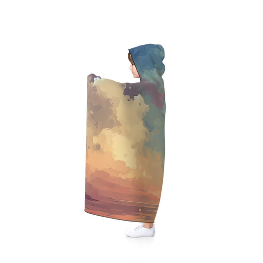 Dusky Sky Glow is a vertical image exhibiting the Tachism style that captures the ethereal essence of a dimming sky, transformed into a watercolor work of art. Abstract, fluid shapes in a range of blues, from deep navy to a soft azure, dominate the canvas, reminiscent of large, billowing clouds in a state of constant flux. Interspersed among the blues are pockets of warm hues—blush pinks, soothing peaches, and subtle lavenders—that border the edges of the clouds, reflecting the waning light of the sun. Nestled within this kaleidoscope of dusk-toned colors is the soft, round form of the sun hovering with a gentle luminance above a calm horizon. Beneath the sun, its reflection mirrors on a tranquil water surface, infusing the lower section of the artwork with a serene glow. The reflection ripples outwards, distorting with the gentle movement of water, while maintaining a symmetry that draws the observer s eyes into a peaceful meditation. Throughout the image, strategic splashes of white and occasional dots of varying colors punctuate the composition, creating an atmospheric sense of a sky sprinkled with the first emerging stars or distant, whimsical light phenomena. The Tachism style lends the entire scene a fluid, dynamic energy, where each brush stroke and color choice feels both deliberate and serendipitously placed, inviting the viewer to bask in the tranquility of the dusky sky s glow.
