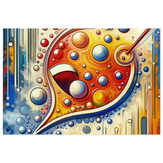 The image titled Humorous Dialogue Gateway is a vivid and imaginative work of abstract art that conveys the concept that humor can lead to more profound conversations. Designed in a vertical format, this piece features Tachism style elements, characterized by spontaneous brushwork, drips, and splatters of paint. Central to the artwork is a large, stylized speech bubble, rendered in a warm palette of reds, oranges, and yellows and filled with a dynamic assortment of circles and dots in various sizes and shades. These whimsical shapes within the speech bubble appear bubbly and effervescent, evoking a sense of light-heartedness and laughter. In contrast, the background displays long, vertical drips and strokes of cooler colors—blues, greens, and whites—that cascade downward. The contrast between the warm and cool colors not only adds visual interest but also symbolizes the contrast between the engaging levity of humor and the depth of meaningful dialogue. The image skillfully blends elements of color, shape, and form, creating an artwork that implies movement and flow. The merging of the vibrant, playful foreground with the cooler, softer background suggests a transition from the lighthearted to the substantive, illustrating how humor can indeed pave the way for deeper dialogue.
