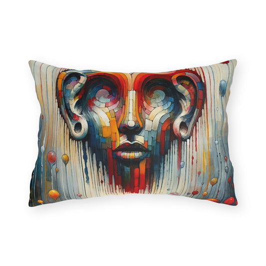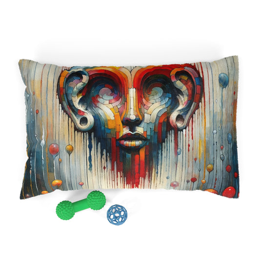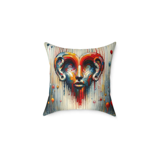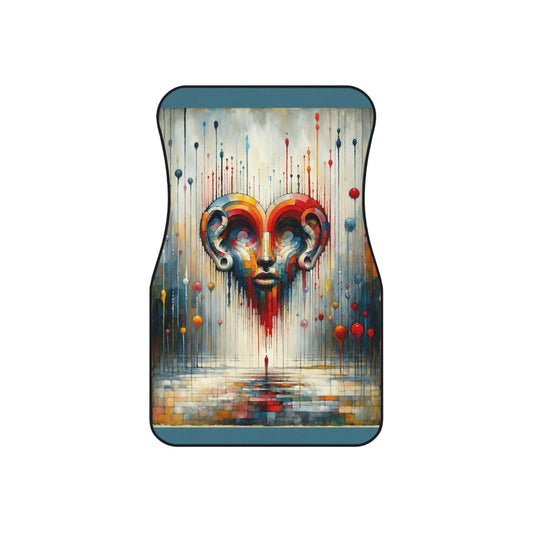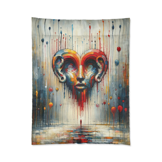Ears Heart Expression is a vertical painting that visually communicates the idea that listening is the precursor to heartfelt expression. In a style reminiscent of Tachism, an abstract modern art movement, the piece is characterized by spontaneous brushwork, drips, and splatters of paint. The focal point is a stylized human face with ears morphing into the shape of a heart, which serves as the central element that embodies the concept that listening with empathy can lead to genuine communication from the heart. The ears/heart motif is a bold presence set against the softer background, denoting the power of empathetic listening. Drips and droplets of paint cascade down the canvas, creating a sense of dynamic movement. The lines of paint vary in thickness and color, ranging from deep reds to blues, which add depth and texture to the artwork. These drips might suggest the flow of emotions and words that emerge from the act of listening and feeling. A subtle and pixelated effect transitions from the bottom of the face to the lower section of the canvas, hinting at a connection between the tangible and the intangible, perhaps symbolizing the complex process of turning sensory input into articulate expression. The color palette is rich with warm reds and cool blues, contrasted by neutral background hues that give the composition a balanced and harmonious feel. The overall impact of the painting is one of contemplation, encouraging the viewer to reflect on the importance of active listening and authentic expression in human connections.
