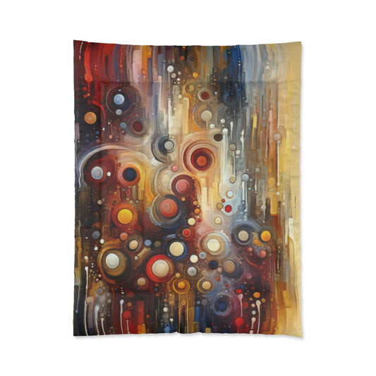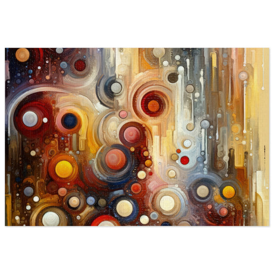 The image titled Tangible Touch Togetherness is a vivid vertical artwork created in the Tachism style, which is characterized by the spontaneous and intuitive application of paint. This painting bursts with an array of colors ranging from warm, deep reds and oranges that evoke a sense of passion and warmth to cooler blues and neutral tones suggesting calmness and balance. Dominating the canvas are numerous circular forms of various sizes, some solid and opaque while others appear transparent and overlapping, creating a sense of depth and complexity. The circles seem to represent individuals or entities, and their interplay with one another symbolizes connections and relationships—the tangible touch of togetherness. Around and between these circles are elongated streaks and drips of paint that suggest movement, possibly communicating the dynamic nature of togetherness and the flow of emotions and energy between beings. The painting as a whole seems to oscillate between order and chaos, with some areas displaying a rhythmic pattern while others seem more random and free-formed. The strategic use of bright highlights and dark shadows adds to the dramatic effect of the imagery, inviting the viewer to interpret the ebbs and flows of human interaction and the beauty found within shared experiences. The painting encapsulates a symphony of emotions and interactions, portraying an abstract yet profound depiction of connectivity and the human need for communal bonds.