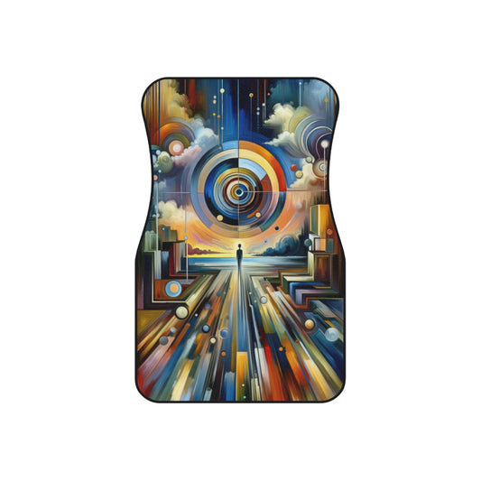The image titled Self Insight Harmony is characterized by a vibrant Tachism style painting that evokes a deep sense of reflection and interconnectedness. At the center, a solitary figure stands facing a mesmerizing circular target that radiates outward with concentric rings of warm and cool hues. The target appears as if it s the focal point of understanding, with patterns and colors flowing towards it. Dominating the foreground, geometric beams of color streak toward the horizon, creating an effect of a pathway leading to the figure and the target beyond. These beams are lined with variously sized spheres, suggesting a multitude of concepts or celestial bodies. To either side of the vibrant central path are vertical panels featuring erratic, yet rhythmic, blends of colors and more structured geometric shapes on the left and flowing, cloud-like forms on the right. Each side conveys its own sense of order and chaos, possibly representing different aspects of the psyche or society. The top half of the painting transitions from the structured chaos near the horizon to a tranquil and orderly upper field. Here, the cosmos-like arrangement of orbs in vertical lines suggests a connection between the individual s understanding and the universal order, reinforcing the painting s symbolic message that realizing one s own nature is essential for societal cohesion. The overall effect is one of compelling beauty that invites contemplation on the role of personal insight in achieving harmony within a larger community.