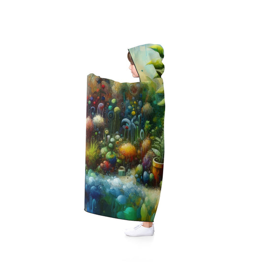 The image titled Communal Garden Microcosm depicts a vibrant and abstract scene, pulsating with color and employing the Tachism style of painting to convey a sense of energy and life. The artwork is an amalgamation of various colorful shapes and textures that together create the impression of a rich, flourishing garden. At the center stands a prominent, lush green tree with broad leaves that serves as an anchor for the viewer s eye, symbolizing growth and vitality. Surrounding the tree is a plethora of other plant-like forms and botanical elements, suggesting a diverse ecosystem. Pops of warm oranges, cool blues, vivid reds, and sunny yellows infuse energy into the scene, while globular shapes and tapered forms mimic fruits and flowers. There are apparent references to harvest and agricultural abundance through the inclusion of pumpkin-like shapes, feathered grass, and other crop-reminiscent forms, embodying the essence of a communal garden. The use of dripping paint and blurred boundaries adds to the abstract quality of the painting, creating a dream-like atmosphere that seems to reflect the interconnectivity and cyclical nature of life within a sustainable living microcosm. The overlay of circular motifs and spirals may symbolize the organic cycles and the regeneration that occurs within a communal garden. The image captures the imagination, inviting contemplation on the importance of harmonious coexistence and the interdependent relationships inherent in sustainable living practices.