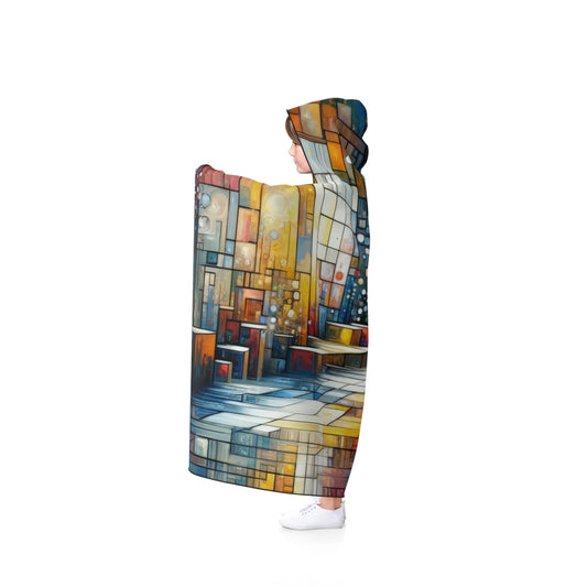 The image titled Reflective Habitation Art is a stunning example of Tachism, an abstract painting style characterized by the spontaneous dribbling, splashing, or smearing of paint on the canvas. This particular artwork stands as a vertical testament to the concept of The Art of Reflective Habitation, where the play of colors and forms come together to depict a space that is at once familiar and fantastical. At the forefront, the painting showcases geometric color blocks with sharp lines and varying opacities, creating an impression of architectural structures. Warm hues of red, orange, and yellow are juxtaposed against cooler blues, which adds a visually pleasing contrast to the piece. Amid these shapes, spherical forms and occasional swirl patterns add an organic feel to the sharp geometry of the spaces, suggesting a harmonious balance between rigid human construction and the fluidity of natural design. The lower half of the painting is a mirror reflection of the vividly painted structures above, but with a twist that aligns with the Tachism style— the reflection is portrayed through long, vertical drips of colors that flow downwards. This blending of upward, crisp architectural forms with the downward streams of their reflections creates a sense of duality, inviting contemplation on the boundary between reality and reflection. Interestingly, the center of the composition features a spiral pattern that resembles a focal point or perhaps a portal, inviting viewers to consider the depths of introspection and the inner spaces one inhabits. This visual metaphor of reflection