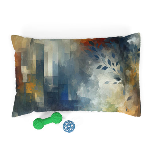 The image titled Contemplative Leaves Whispers is a stunning display of abstract expressionism, reminiscent of the Tachism art style. The vertical canvas is saturated with an emotive blend of colors, textures, and shapes that evoke a sense of tranquility and introspection. The predominant use of earthy tones—amber, sienna, sepia, and russet—contrasts with the cooler hues of blues and grays to create a harmonious balance reminiscent of the interplay between light and shadow. At the heart of this abstract landscape, ethereal impressions of leaves appear as the central motif. The leaves are depicted in a gentle, whisper-like form, rendered with a delicate touch that suggests fragility and elegance. Their quiet existence stands out against a backdrop of bold brush strokes and color fields, symbolizing perhaps the softness of nature amidst the tumult of human contemplation. The image invites the viewer to pause and hover between recognition and mystery. The horizontal lines at the bottom of the piece anchor the composition, offering a visual resting place that complements the upward movement of the leafy forms. This interplay between the tangible and the intangible encourages the audience to meditate on their own role in shaping the world, just as the quiet whispers of the leaves seem to be shaping the very essence of the painting before them.