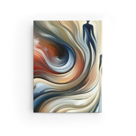 Titled Silent Journey Recognition, this vertical Tachism style painting captures the essence of an act of silent communication, a shared recognition of our mutual journey through abstract forms and vibrant colors. The artwork is characterized by energetic, sweeping brushstrokes that create a sense of fluidity and movement. Dominating the center of the composition are two elongated, silhouetted human figures facing each other, seemingly engaged in a non-verbal exchange that transcends the need for words. The color palette of the piece is rich and variegated, with warmer hues of red and orange on one side that gradate into cooler tones of blue and white on the other, symbolizing possibly the multiplicity of emotions and experiences on our collective life paths. Sweeps of lighter shades intersect with darker areas, suggesting depth and complexity. The swirls around the figures create a dynamic interplay that seems to ebb and flow with intensity, giving the impression that the surrounding environment is responding to their silent communion. The forms and colors appear to be pulled by an invisible force toward a convergence point near the center, emphasizing the connection between the two figures. This masterful use of Tachism invites viewers to contemplate their own experiences of unspoken understanding and the profound connections that we share with one another on life s journey.