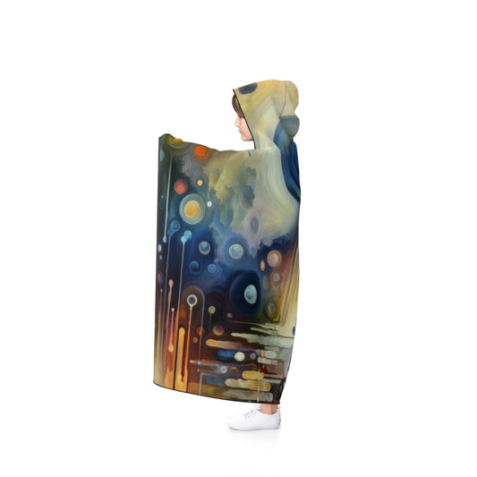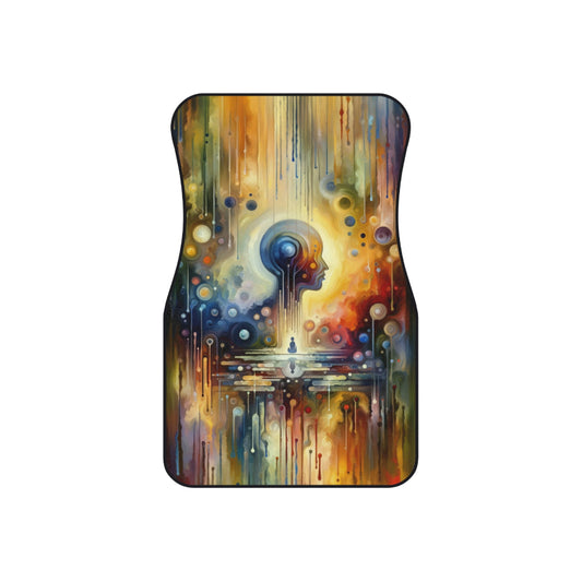 The image, titled Reflective Oneness Healing, is a vertical artwork rendered in the Tachism style. Rich in symbolism and color, it represents the theme Reflections of Oneness: Healing from Within . At the heart of this piece is the evocative silhouette of a human head in profile, situated centrally against a backdrop of swirling colors and dynamic brushstrokes. The color palette is warm, dominated by ambers, golds, and hints of fiery red, tempered by soothing blues and turquoises, suggesting a balance between energy and calm. The drips and circles of paint create a sense of movement that flows down the canvas, reminiscent of rain or tears that blend into a larger body of water or perhaps into the ether itself. Below the head silhouette, a distinct human figure sits in meditation, grounded and serene, signifying the inner journey of healing and reflection. The figure serves as a focal point for the composition, almost mirroring the sensory input of the larger head above. The concentric circles that emanate outward link to the motif of oneness and completeness. The mixture of blurred and sharp elements within the image captures the ever-shifting nature of personal growth and the healing process, while also inferring a metaphysical connection between the individual s inner world and the universe at large. Overall, the image conveys a message of introspection, unity, and the transformative power of looking inward for healing.