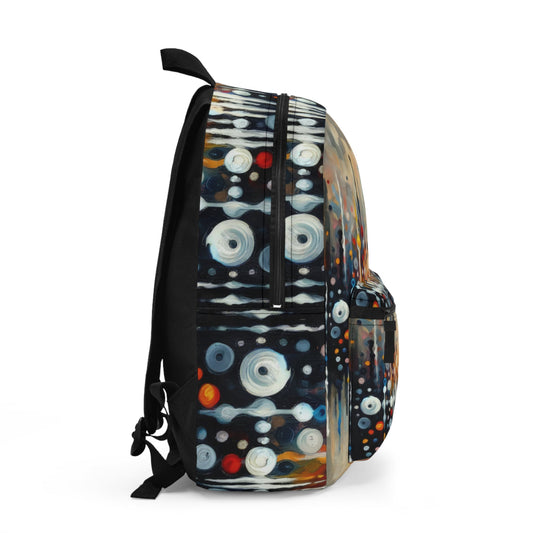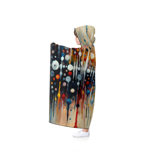 The image titled Distant Barking Echoes is a vertical artwork created in a Tachism style, which is characterized by the application of paint in a spontaneous and instinctive manner. The painting symbolically represents the sound of a neighbor s dog barking at a distance. The canvas is a vibrant mix of colors and patterns that allude to the dispersal of sound waves as they travel through space. The composition is dominated by an array of dark and bright drips, dots, and splashes that create a dynamic and somewhat chaotic texture. Central to the artwork is a concentration of circular forms in various sizes and colors, against a background of neutral hues. These forms are suggestive of sound waves rippling outwards, their positioning and color intensity perhaps capturing the sense of sound as it fades and intensifies. The lower part of the composition becomes denser with color, potentially representing the onset of the sound, which then diffuses and diminishes as the eye travels upwards across the painting. The patterned backdrop suggests the ambient environment that absorbs and muffles the sound of the distant barking. Overall, the interplay of form, color, and texture provides a visual metaphor for auditory experience, reflecting both the persistence and ephemerality of sound.