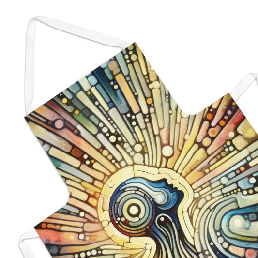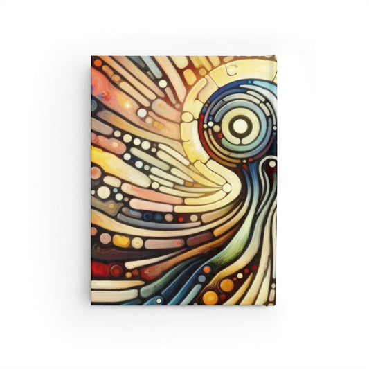 Inner Mosaic Kindness is a vertical image realized in a Tachism style that symbolically represents the concept of Crafting the Inner Mosaic of Kindness . The artwork exhibits a vivid exploration of color and form, invoking a sense of organic unity and diversity. At the heart of the piece is a swirling focal point, reminiscent of an intricate eye or celestial body, from which the mosaic emanates. This central motif could symbolize the core of kindness within, serving as the origin of all outward expression. Radiating lines and circles of varying lengths and sizes flow outwards, forming a burst of dynamic streaks, which could interpret the spreading of kindness through every facet of life. The colors are a rich tapestry of warm and cool tones, blending seamlessly into each other, from deep cerulean blues to fiery oranges and reds, punctuated with soothing creams and earthy browns. Elevated by the glossy finish, the colors have a luminous quality, as if each brushstroke carries its own light. Many of the lines are bordered by thin rings of contrasting colors, adding depth and the illusion of three-dimensionality to this abstract composition. The interspersed dots and circles throughout the mosaic add a playful texture, while also potentially representing moments, people, or experiences that contribute to the overall theme of kindness. The piece captures the complexity and beauty of crafting kindness within oneself and does so with a hypnotic, rhythmic harmony that invites the viewer to reflect on the