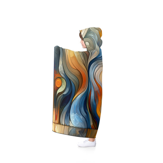 The image titled Self Embrace Benevolence is a vertical, Tachism style painting that vividly explores the concept of nurturing kindness towards oneself. This abstract artwork is a passionate blend of warm and cool hues, swirling together to create an impression of fluid motion and emotional depth. The painting features smooth, organic shapes and spirals that mimic natural elements, flowing across the canvas in a symphony of colors ranging from fiery reds and oranges to tranquil blues and greys. In the center of this dynamic background, there s a stylized figure representing the human form, seemingly merging with the abstract environment. This silhouette is rendered in shades of blue and white, reminiscent of water, and is embracing two yellow orbs that may symbolize light or warmth, indicating an act of self-love or inner peace. The bottom half of the artwork contains a clear reflection, amplifying the symmetrical beauty of the design and reinforcing the theme of introspection and self-reflection. The tranquil, mirror-like quality of the reflection contrasts with the vibrant energy of the upper half, creating a balanced yet complex visual experience that invites the viewer to ponder the importance of benevolence towards oneself. This piece encapsulates the tumultuous yet harmonious journey of self-discovery and self-compassion.