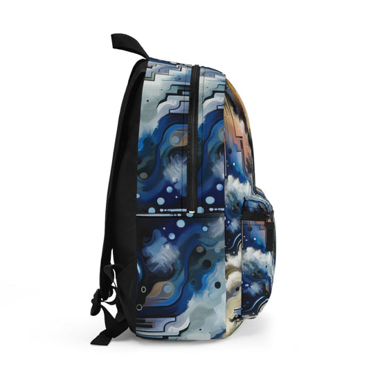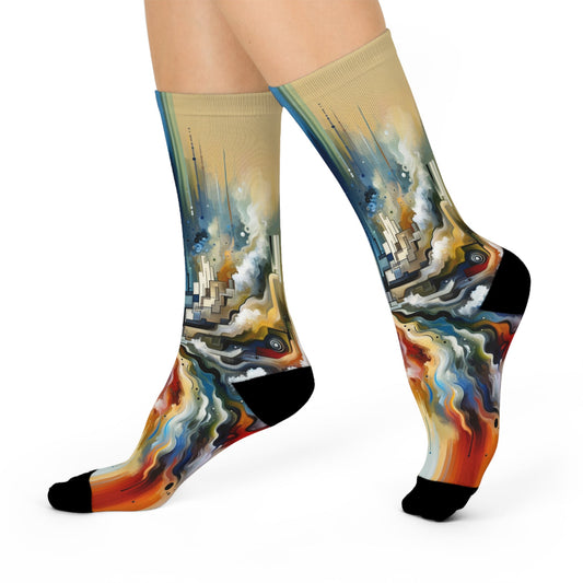 The image titled Digital Divide Navigation is a striking vertical artwork in the Tachism style, symbolically representing the concept of Navigating the Digital Divide. The piece is a vivid visual account of the contrasting experiences and realities presented by the digital era. The upper portion of the painting features a blend of blues, whites, and yellows intermingled with abstract shapes that resemble modern skyscrapers or circuitry, symbolizing the advanced technological infrastructure and the abundance of information and opportunities available to those on one side of the digital divide. As the eye travels down the canvas, the colors become warmer and more turbulent, with swirling patterns of reds, oranges, and deep blues. This section seems to depict a more chaotic and tumultuous environment, suggesting the instability and lack of access that characterize the experience of those on the other side of the divide. Connecting these two contrasting zones is a central area where the colors and shapes from both the upper and lower sections intermingle, creating a sense of interaction and possible transition. Thin drips of paint cascade down the canvas, perhaps symbolizing the flow of information and resources, while also emphasizing the gravity of the digital divide that permeates society. Overall, the piece captures the dynamic and fluid nature of the digital age, while simultaneously highlighting the deep disparities that exist within it.