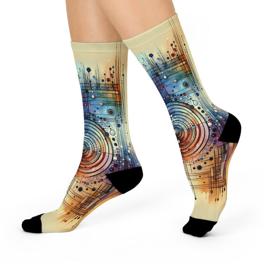 The artwork titled Rituals Over Routines is a vibrant, Tachism style vertical image, evoking the essence and juxtaposition between the concepts of rituals and routines . The dominant visual is a concentric circle that draws the eye toward its center, symbolizing a focal point or perhaps an altar of ritualistic significance. This centerpiece is surrounded by various geometric shapes, lines, and patterns that seem meticulously arranged, hinting at the concept of routines. The colors used transition from cooler blues on the right, implying a sense of calm and perhaps the mundane, to warmer reds and oranges on the left, which could represent the fervor and passion associated with rituals. The backdrop features splatters and drips, characteristic of the Tachism art movement, which could indicate a transcendence from order to a more fluid and expressive state. These spills and spots break through the organized patterns, suggesting a disruption of routine by the spontaneous and meaningful nature of rituals. The overall composition uses a rich palette of colors, and a contrasting combination of order and chaos, creating a sense of movement from the structural to the spiritual, effectively depicting the transition from repetitive daily routines to rituals that provide deeper, more introspective value to life.
