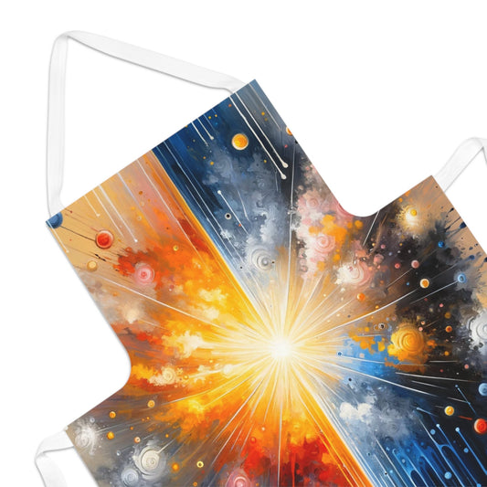 Titled Luminous Abstract Tachism, this captivating vertical painting exemplifies the Tachism art style. It represents a visual explosion of light and color, with a bright, central light source erupting from the core and extending towards the borders of the canvas. This focal point radiates with intense yellows and whites, contrasting with deep reds, oranges, grays, and blues that swirl around it. The color palette is diverse, spanning warm tones that bleed into cooler hues as though the canvas is in the midst of a dynamic transformation or clash between opposing forces. The composition appears almost symmetrical, with the vivid burst of light serving as a dividing line, yet also creating a harmonious balance between the two contrasting sides. Prominent drip effects, characteristic of the Tachism movement, add a sense of motion and texture, as thick strands of paint seemingly run down the painting. These dripping lines echo the vertical orientation of the canvas, elongating the piece and providing a stark, fluid contrast against the predominantly chaotic background. Spheres of various sizes float within the space, some with halos of lighter tones suggesting dimensionality and depth. These orbs, along with the textured elements of the paint, contribute to the overall sense of movement and energetic flow within the painting. The artwork vibrates with life and could symbolize a cosmic event, the explosive creativity of the mind, or an abstract interpretation of the birth of ideas and inspiration.
