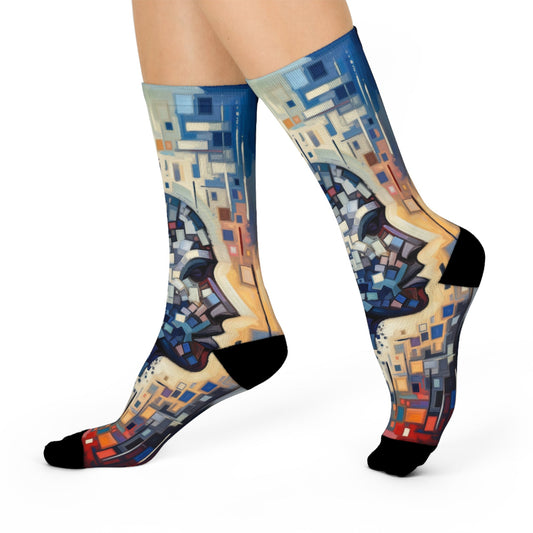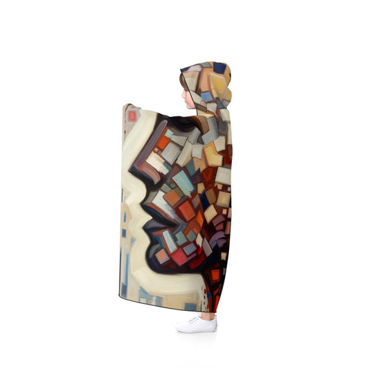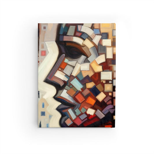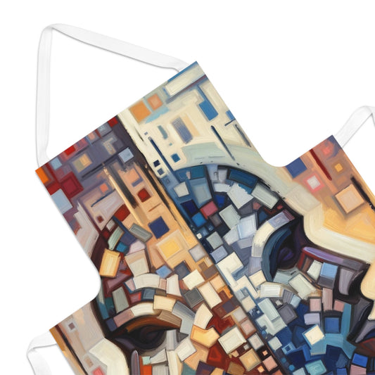 The artwork titled Identity Tachism Intersection is a vertical Tachism style painting, rich with symbolic interpretation of The Personal as Political theme. Tachism, derived from the French word tache meaning stain, is reflected here in the painting s abstract, spontaneous brushwork, which is characteristic of this mid-20th-century European art movement. In the foreground, the central focus is on the profiles of two human faces gazing in opposite directions, created with a mosaic of shapes and colors that suggest a complex layering of identity. The face on the left side is painted with warm hues of brown, red, and orange, while the face on the right side is cast in cool shades of blue, white, and gray. The contrasting colors may express the multifaceted nature of personal identity and the duality inherent in the public and private spheres of life. The background features a cityscape-like grid of rectangles and squares, contributing to the abstract urban feel of the piece. On both sides, the grid creates a striking contrast with the curvilinear silhouette of the faces, reinforcing the juxtaposition between individuality and the collective society. The merger of faces and the geometric background might imply the intersection between individual experiences and larger social and political structures, suggesting that personal choices and expressions are deeply influenced and shaped by external societal factors. Overall, the painting is a thought-provoking visual representation of the interconnectedness of self and society.