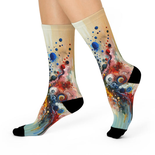 The image titled Unity Duality Abstraction is a vibrant Tachisme style painting that exudes a powerful interplay between individualism and collectivism. In the artwork, a dynamic central division appears to cascade down the canvas in a symphony of molten colors and forms, articulating the inherent tension and harmony between singular and shared identities. To the left, cool hues of blue and white merge with fiery orange accents, where spherical forms ranging from small dots to larger concentric circles populate the space. These circles, some solid, some transparent, seem to represent individual entities within the collective continuum, symbolizing an array of personalities or elements within a larger construct. Transitioning towards the right, the colors shift to a warmer spectrum dominated by reds, corals, and creams, with similar circular motifs connecting the two halves. These circles and spirals are interwoven with streaks of color and energetic splatters, suggesting both chaos and coordination. The profound swirls invoke thoughts of galaxies or whirlpools, evoking a sense of motion and depth that pull the observer into a contemplative state. Thick, bold strokes of paint create a textural depth, and the dripping paint intensifies the impression of fluidity and change. Despite the divided composition, the painting underscores a unified phenomenon, mirroring how distinct units coalesce into an integral whole. This abstract art piece is a compelling interpretation of the dialectical relationship between The Individual and the Collective.