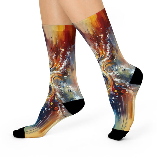 The artwork titled Mindfulness Motion Divine is a vibrant and expressive vertical image executed in Tachism style. It symbolically explores the theme of Mindfulness in Motion: The Daily Dance with the Divine, conveying movement and spirituality through abstract visual language. The dynamic composition features swirling, organic shapes and lines that suggest fluid motion and transformation. A central, tree-like form serves as the focal point, with curvilinear patterns emanating from it, reminiscent of roots or branches reaching out in all directions. The color palette is rich and diverse, ranging from cool blues and soothing earth tones to bursts of warm reds, oranges, and yellows. The juxtaposition of colors creates a dramatic contrast, potentially representing the interplay between the physical and the spiritual realms. Drips and splatters of paint add texture and depth to the image, enhancing the impression of spontaneity and the ephemeral nature of the moment. Intricate circles and dots of varying sizes are scattered throughout, reminiscent of bubbles or celestial bodies, contributing to the mystical and cosmic feel of the piece. These elements seem to dance around the central figure, further emphasizing the concept of motion and the interconnectivity of all things within the universe. Overall, the picture resonates with the essence of mindfulness, capturing the idea of being fully present and engaged with the divine in every movement of daily life. The artwork invites the viewer to contemplate the ongoing dance of existence, encouraging a deeper connection with the inner self and the world around
