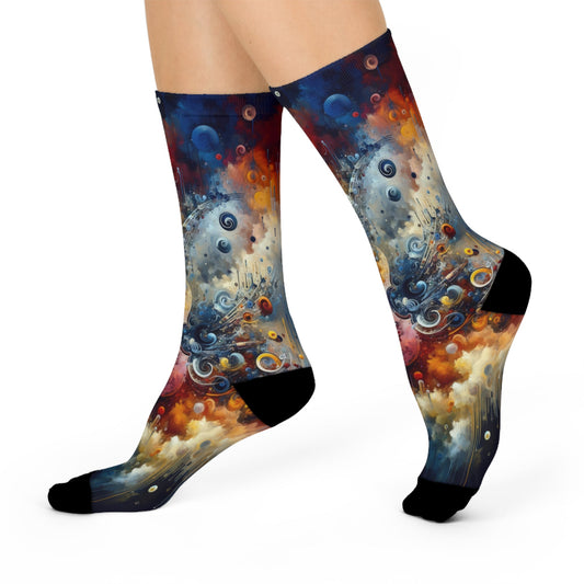 Titled Symphonic Choices Canvas, this vertical image is a vibrant and expressive work of art in Tachism style. The painting symbolically represents the theme Crafting a Concerto of Choices, and it vividly encapsulates the concept of making decisions through a dynamic and musical lens. At the heart of the artwork is a stylized string instrument resembling a cello or violin, with the scroll and neck prominently morphing into a question mark at the top, suggesting the uncertainty and choices inherent in the creative process. The strings of the instrument trail down into swirling patterns and dots that can be interpreted as musical notes or choices echoing through time and space. The background hosts a storm of colors ranging from deep blues and blacks at the bottom to golds, reds, and striking cloud-like forms bursting upwards. The rich color palette transitions seamlessly throughout the piece, giving life to an atmosphere of contemplation and possibility. Dotted with circles and spirals reminiscent of cosmic bodies, the artwork seems to connect the act of making choices with the grandeur of the universe. Vertical drips and rounded forms contribute to a rhythmic feel, as though the painting itself is vibrating with music. Overall, this piece juxtaposes the abstract beauty of art with the complex process of decision-making through a musical metaphor.