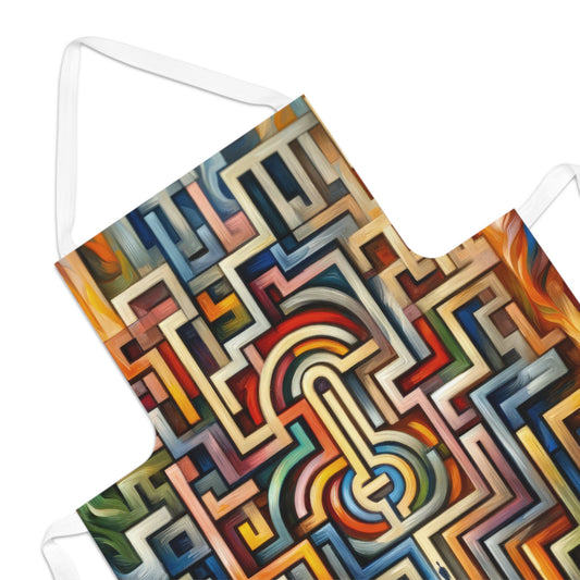 The artwork titled Labyrinthine Love Choices is a vertical Tachism style painting that visually encapsulates the theme of The Labyrinth of Love and Choices . The composition is vivid and intensely colored, suggesting a deep emotional journey punctuated by moments of passion and contemplation. At the center lies a complex maze-like structure composed of intertwining paths and blocks rendered in various warm and cool hues. The array of colors ranging from fiery reds and oranges to calming blues and greens symbolize the spectrum of emotions and states one encounters through the trials of love and decision-making. Each path within the labyrinth seems to offer a new direction, much like the choices one faces in the pursuit of romantic and emotional connections. There is a notable concentration of circular patterns and lines near the heart of the maze, perhaps indicating the cyclical nature of relationships and the repetitive challenges inherent in navigating them. The painting conveys movement through swirling brushstrokes, mimicking the psychological and emotional turbulence that accompanies the intricacies of love and life s choices. Standing at the entrance of the labyrinth is a lone figure, offering a human element to the otherwise abstract depiction—a silent protagonist embarking on this profound and universal quest.