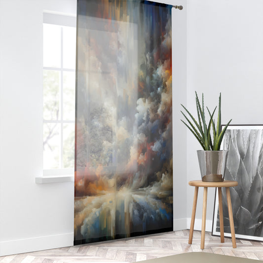 The image titled Unspoken Symphony Ethereal is a captivating vertical artwork in the Tachism style, depicting an abstract interpretation of unspoken words. The canvas is alive with a dynamic interplay of colors and textures, creating an intense visual experience that symbolizes the intangible and the unexpressed. At the core of the image, deep, roiling clouds of warm and cool hues seem to clash and combine, with fiery oranges and reds merging with calming blues and grays, conjuring a volcanic eruption or a stormy sky. Emanating from this explosion of color are long, vertical streaks of paint that cascade downwards, suggesting a reflection in water, perhaps indicative of the echo of unspoken thoughts reaching into the depths of the subconscious. Swirling patterns resembling spirals and rings overlay the composition, adding a sense of mysticism and movement. These could be perceived as reverberations or sound waves—metaphors for the silent messages and emotions that ripple through the mind and heart, yet remain unarticulated. The piece evokes a sense of both chaos and harmony, capturing the complexity of feelings and ideas that we often hold back. It invites the viewer to a silent contemplation, offering a visual representation of the overwhelming and beautiful symphony of unexpressed thoughts—an ode to the power of the unsaid.