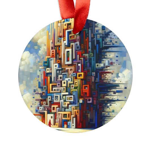 Abstract Geometric Boundaries Acrylic Ornament with Ribbon