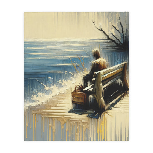 Seaside Solitude Tachism Velveteen Microfiber Blanket (Two-sided print)