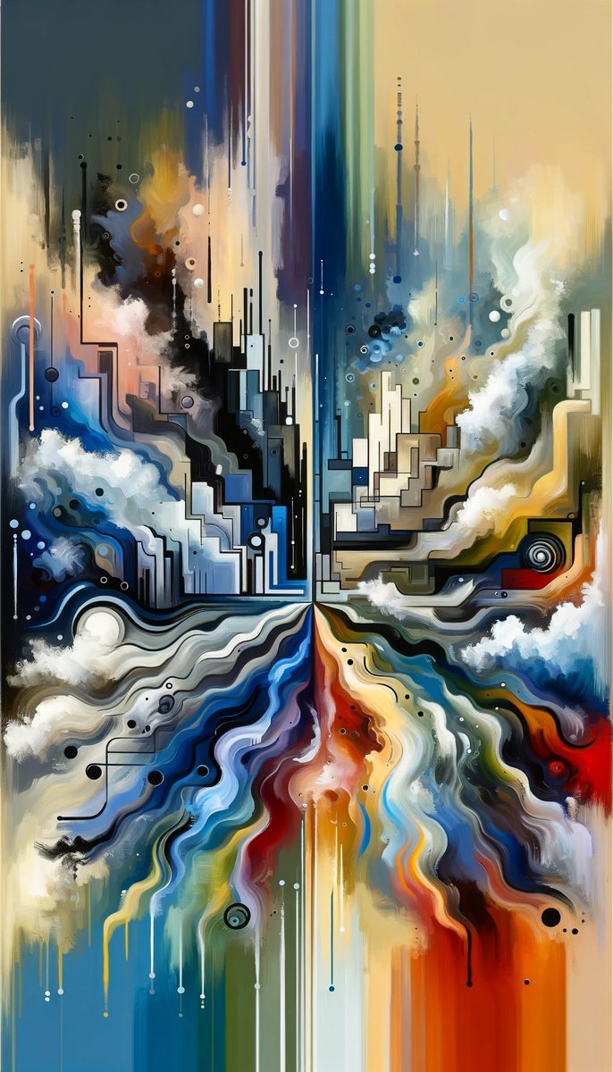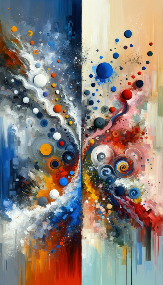 The image titled Unity Duality Abstraction is a vibrant Tachisme style painting...