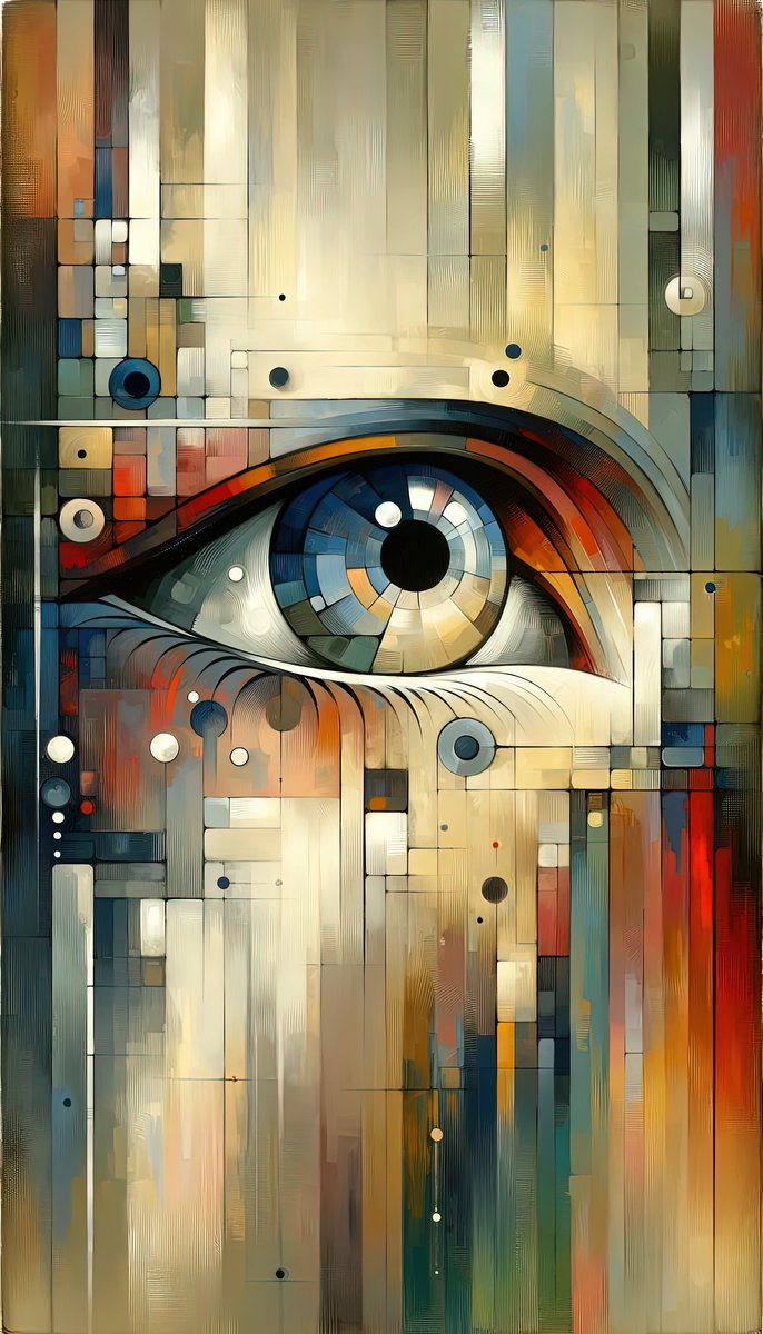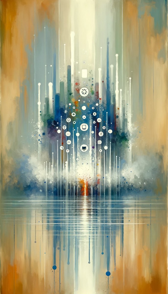 Sovereign Reflective Tachism is a vertical image painted in the Tachism style...