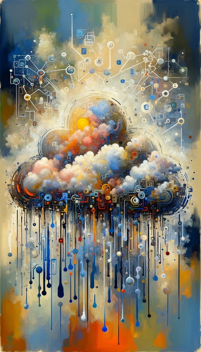 The image titled Cloud Community Crafting is a vertical painting that showcases...