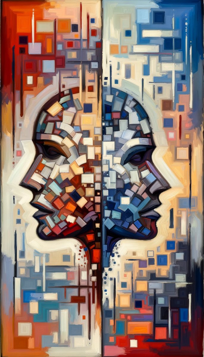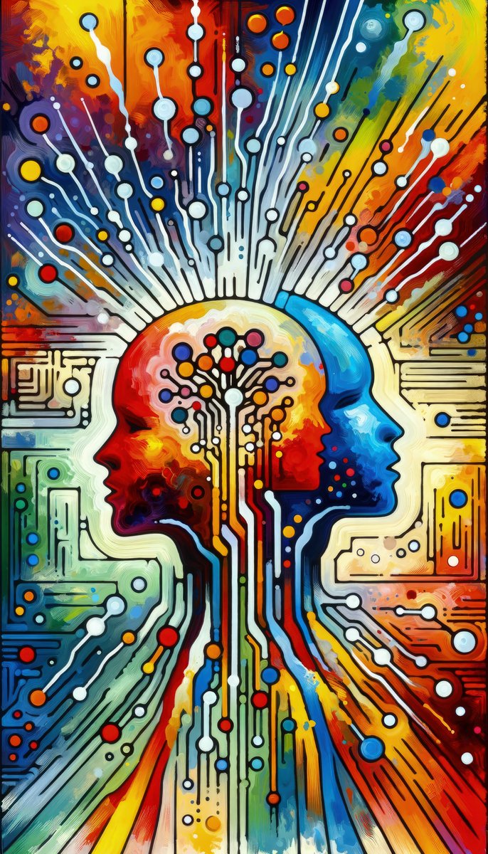 Titled Empathetic Connection Abstract, this vertical image is a vibrant and colorful...
