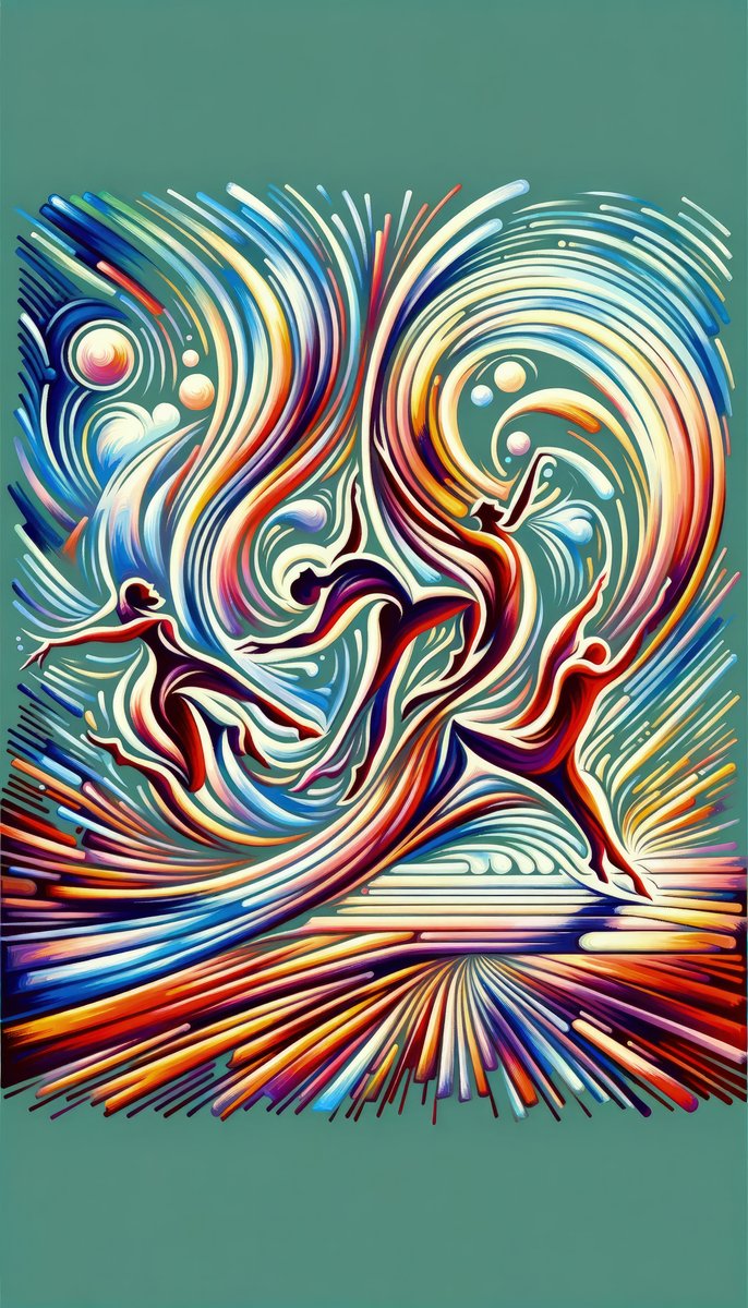 Titled Choreographic Mindful Tachism, this vertical image showcases an abstract portrayal of...