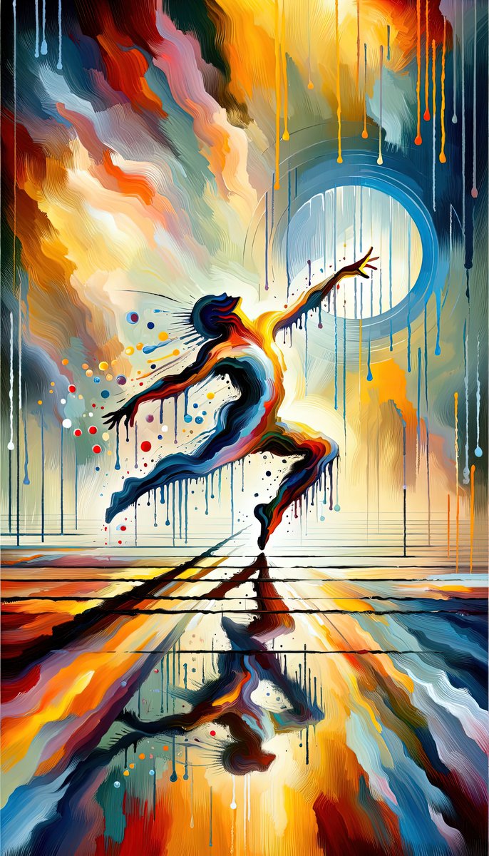 The image titled Expressive Dance Reflection is a striking vertical artwork in...