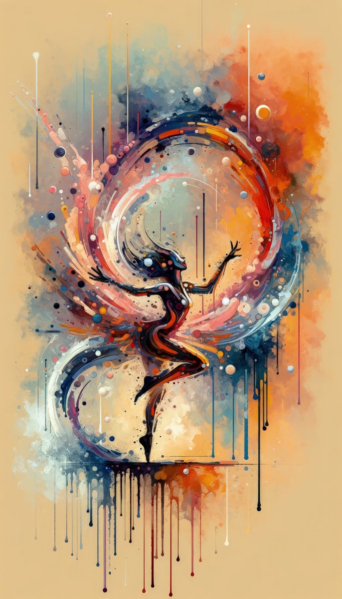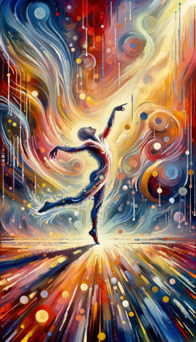 The image titled Wholehearted Divine Dance is a vibrant vertical canvas imbued...